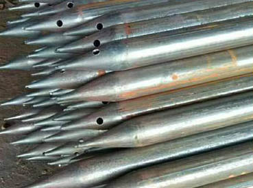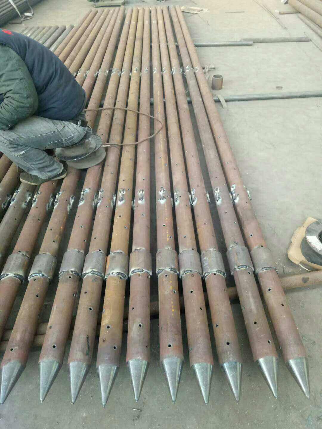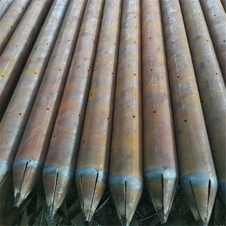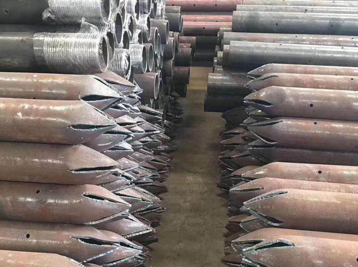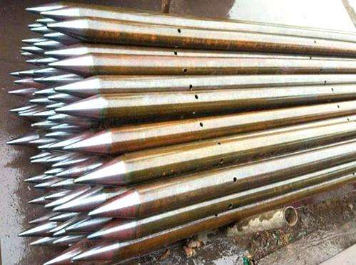 鋼花管直徑從42至114不等,壁厚在4-6mm之間,視工程設(shè)計需要鉆出相應(yīng)直徑的出漿孔。